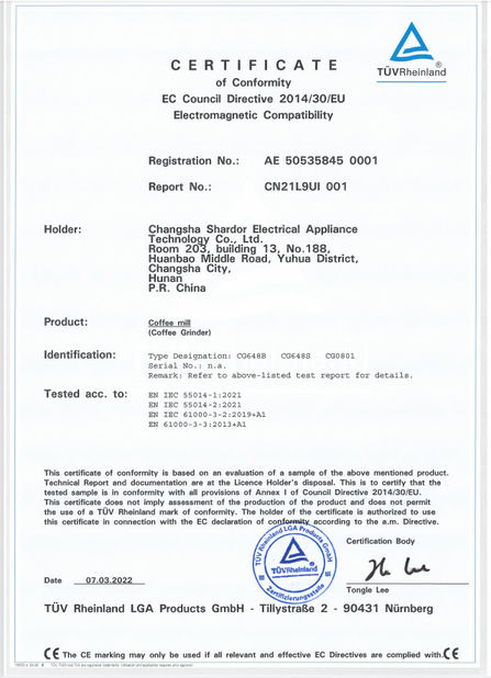अधिकांश कॉफी परिधीय उत्पाद, जीएस / सीई / सीबी / एलएफजीबी / पीएसई / यूएल / ईटीएल अनुमोदन और प्रमाण पत्र के साथ